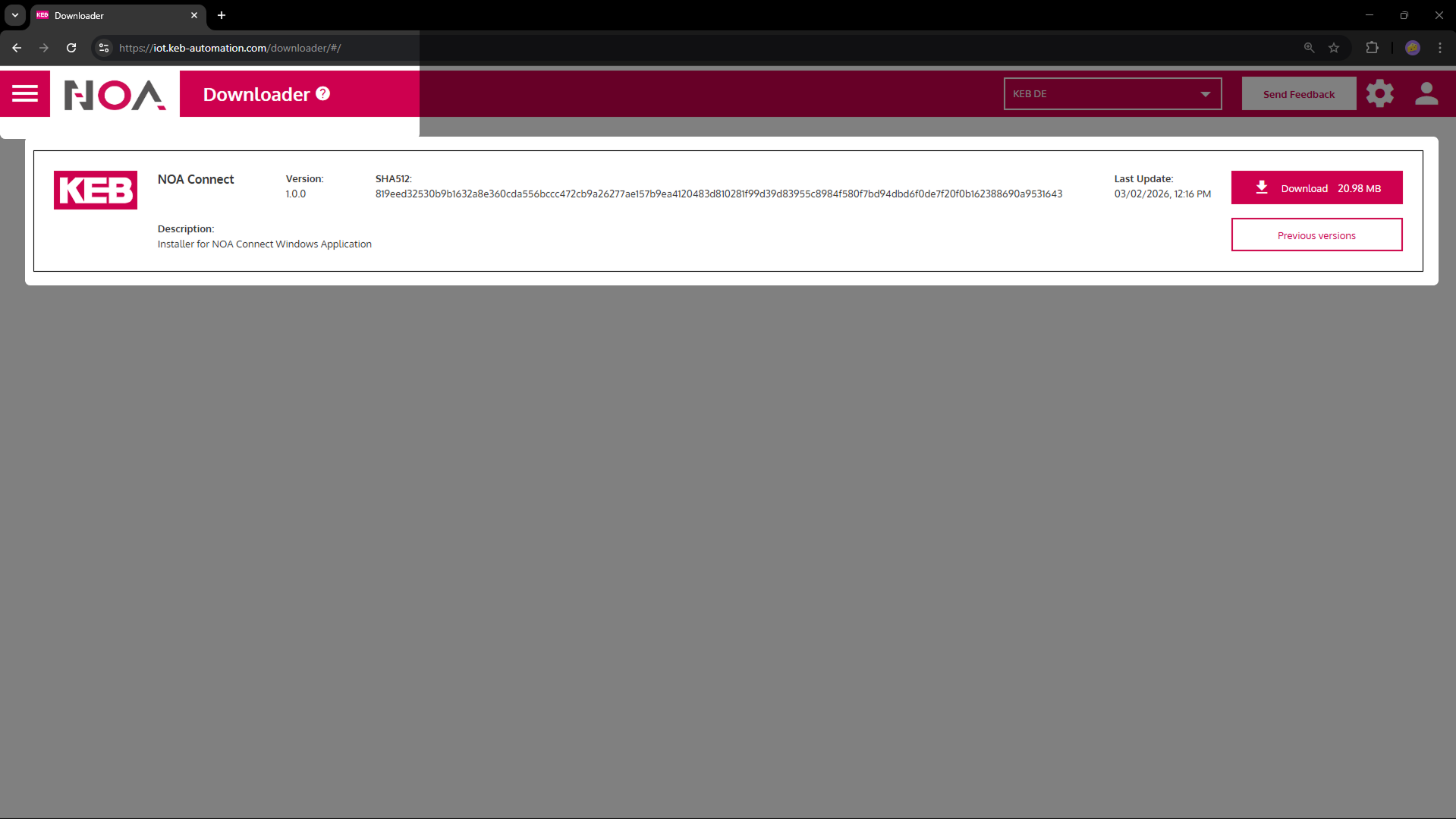 1. Download the installer from NOA Portal > Cog Wheel Menu > Downloads