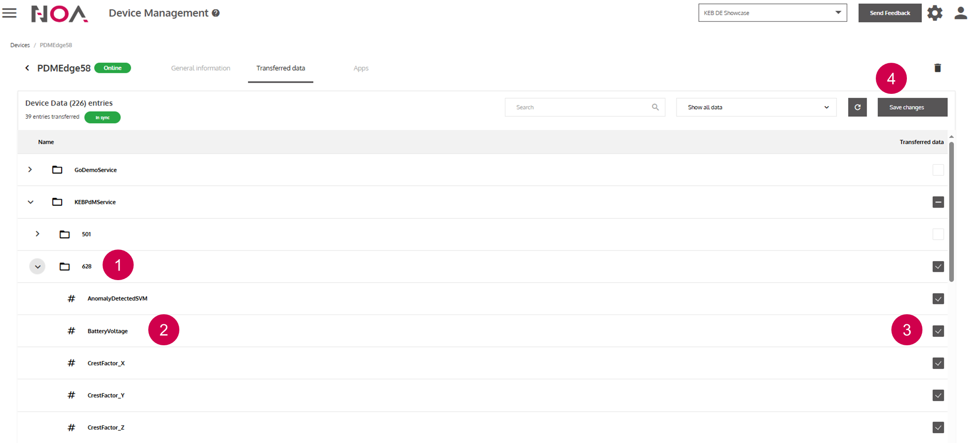 | The data received from NOA Portal and send from NOA Core of the device are synchronized. | |