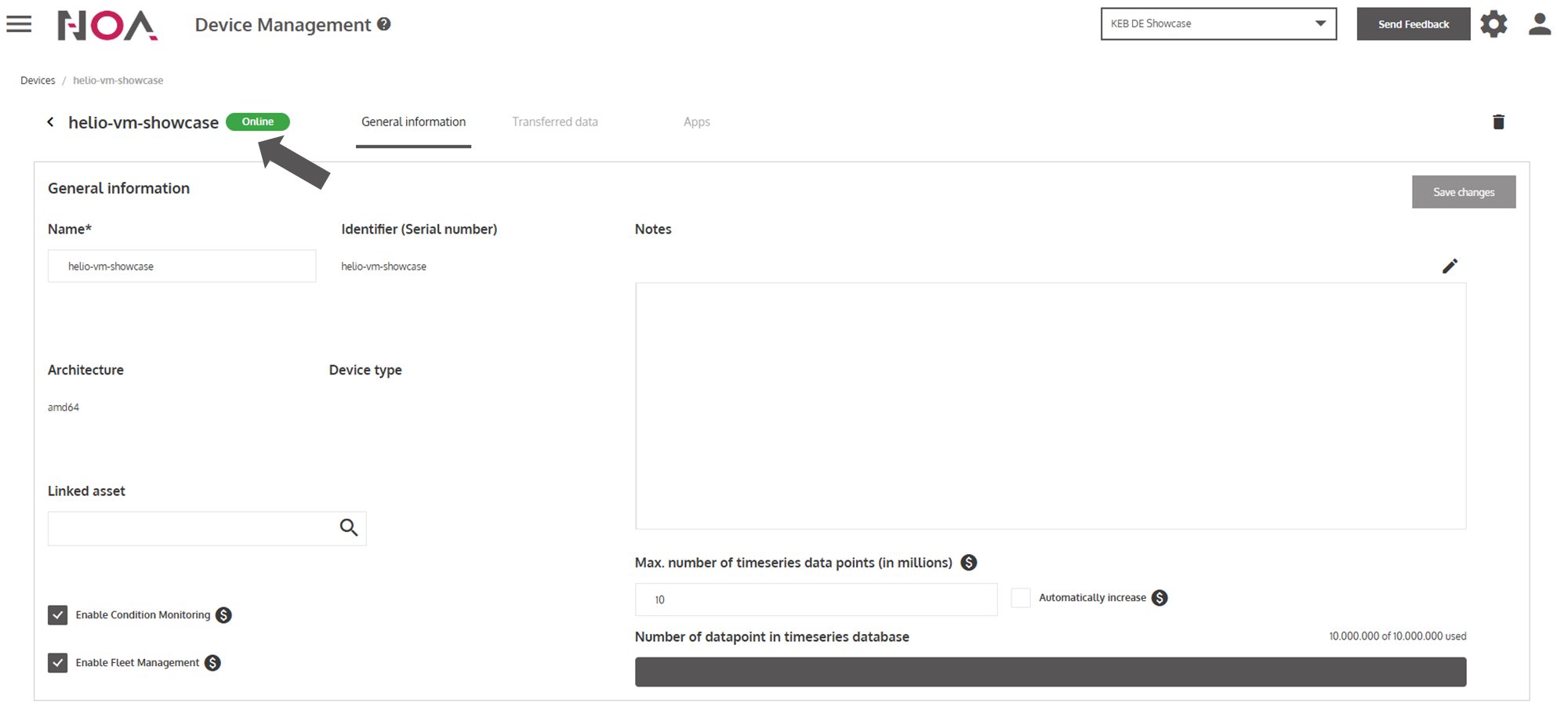 | The device is not connected to NOA Portal. This is usually the case, when the device is turned off or is not connected to the internet. |