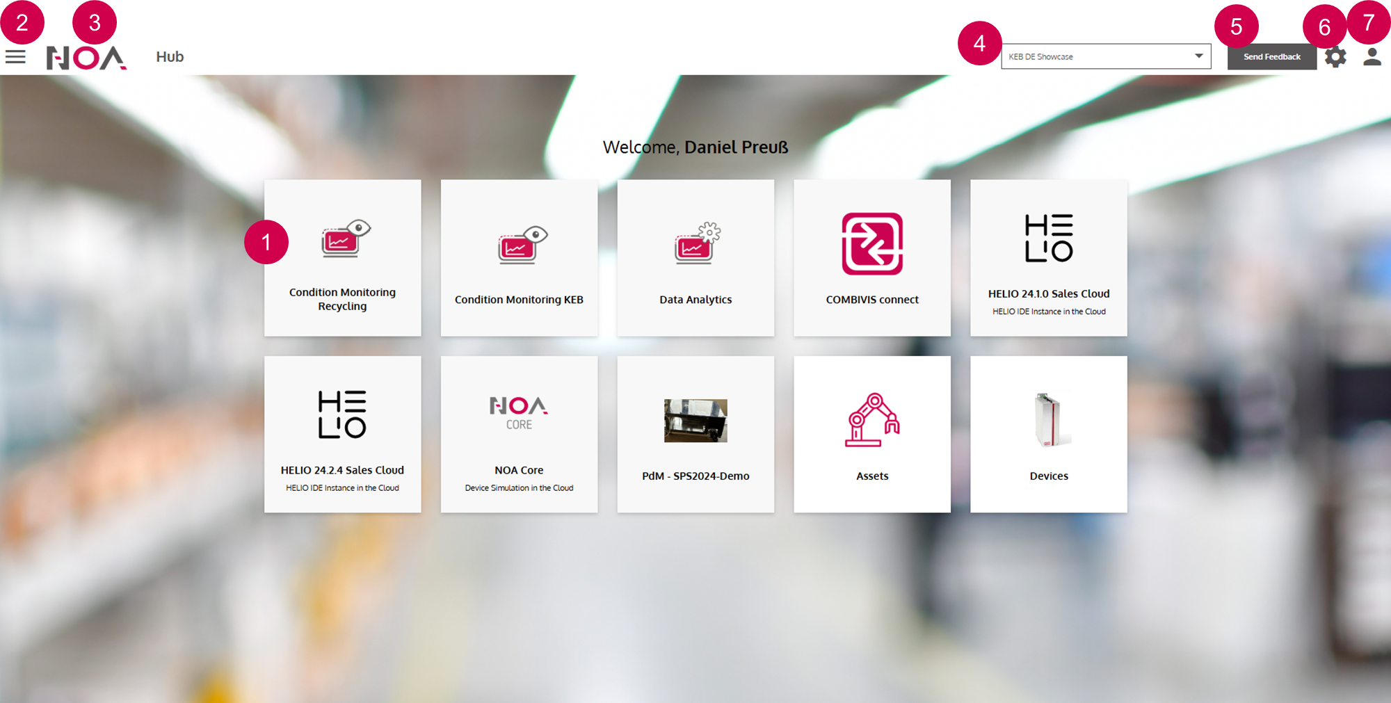On the Hubpage, Tiles are displayed that contain URLs and lead you to different